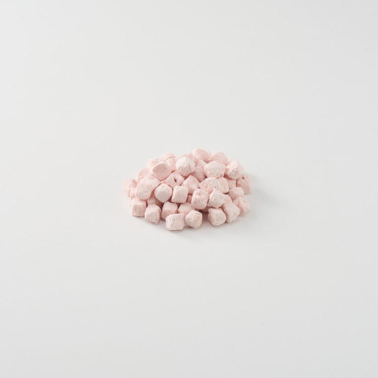딸기와 플레인 그릭요거트를 동결건조하여 만든