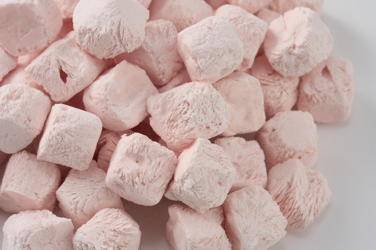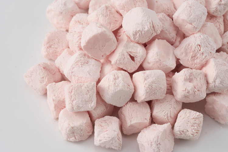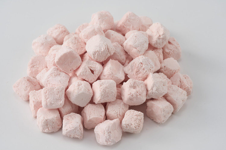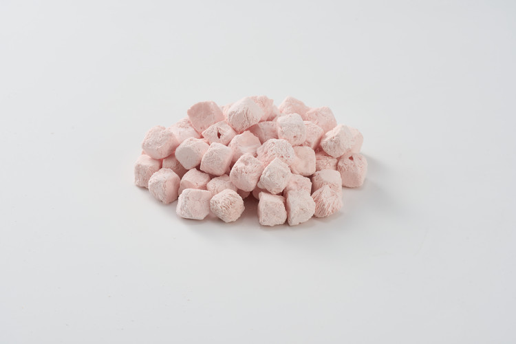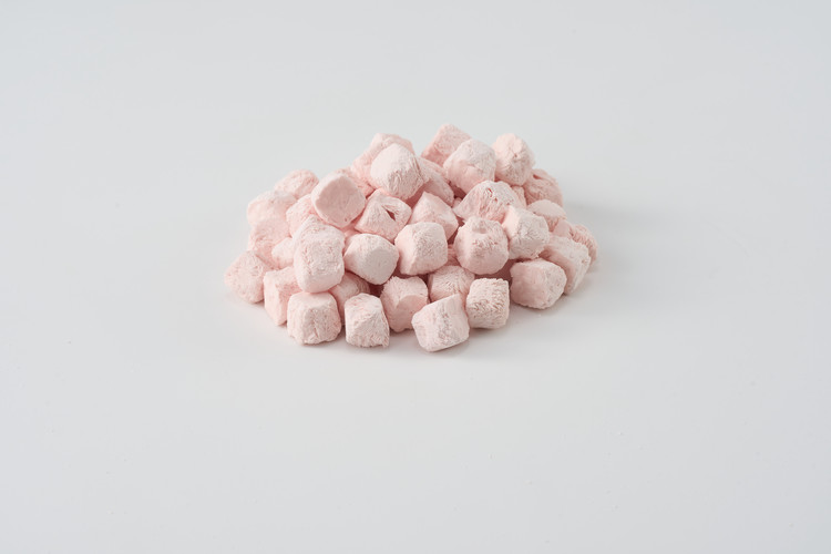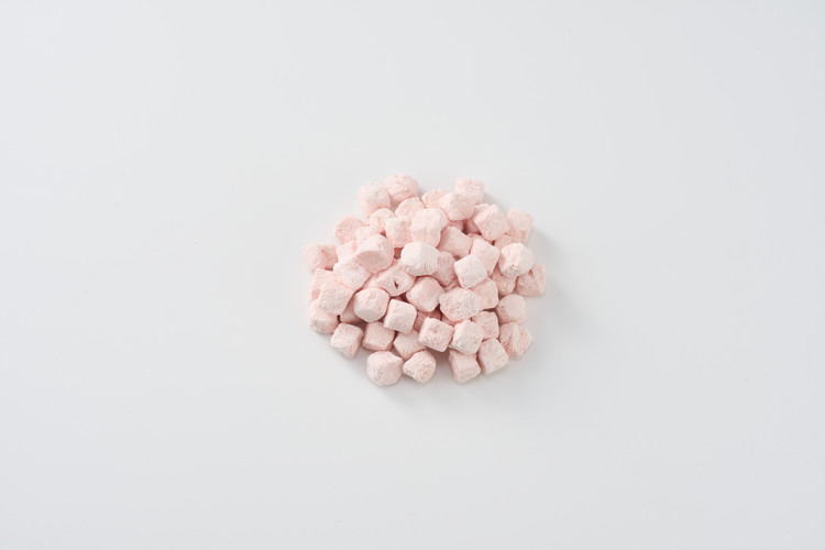 딸기와 플레인 그릭요거트를 동결건조하여 만든